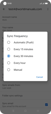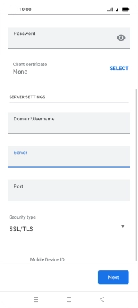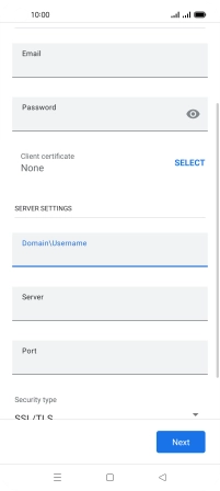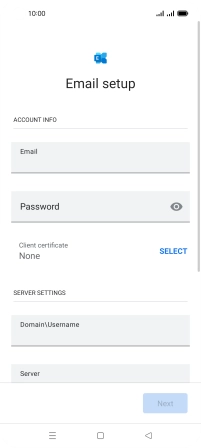 If this screen is displayed, your email account has been recognised and is being set up automatically. Follow the instructions on the screen to key in more information and finish setting up your phone.