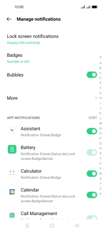 Press the indicators next to the required apps to turn the function on or off.