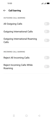 Press the indicator next to the required barring type to turn the function on or off.