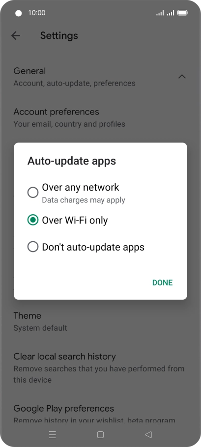 To turn on automatic update of apps using Wi-Fi, press Over Wi-Fi only.