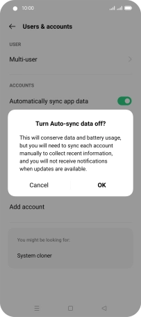 Press the indicator next to "Automatically sync app data" to turn the function on or off.