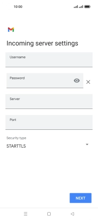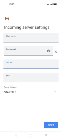 Press the field below "Server" and key in the name of your email provider's incoming server.