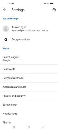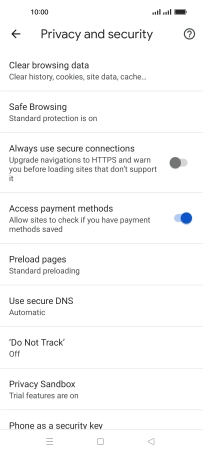 Press Privacy and security.