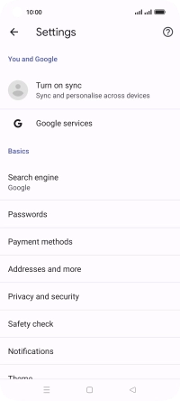 Press Privacy and security.