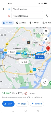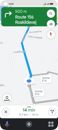 The travel information at the bottom of the screen shows your estimated time of arrival and distance to destination.