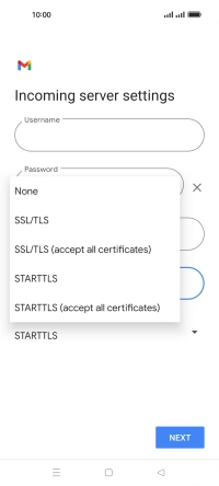 Press the field below "Server" and key in the name of your email provider's incoming server.