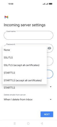 Press the field below "Server" and key in the name of your email provider's incoming server.