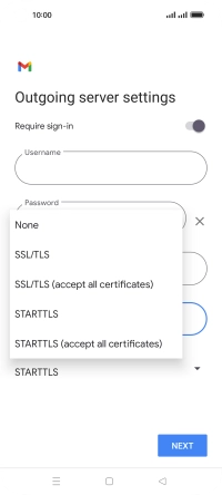 Press the field below "Username" and key in the username for your email the email provider's outgoing server.