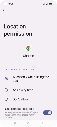 Press the indicator next to "Location" to turn the function on or off.