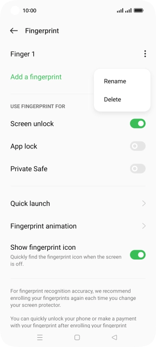 Press the menu icon next to the required fingerprint.