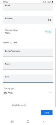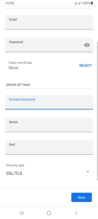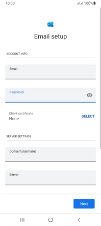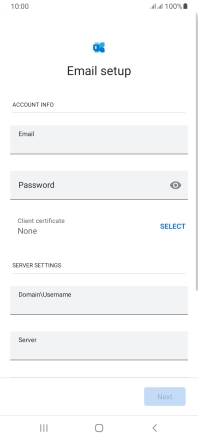 If this screen is displayed, your email account has been recognised and is being set up automatically. Follow the instructions on the screen to key in more information and finish setting up your phone.