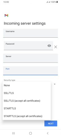Press the field below "Server" and key in the name of your email provider's incoming server.