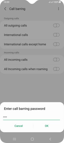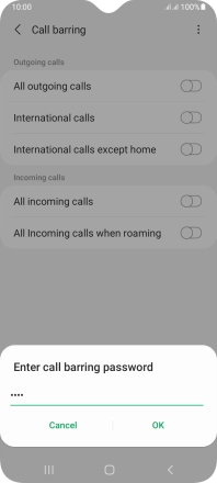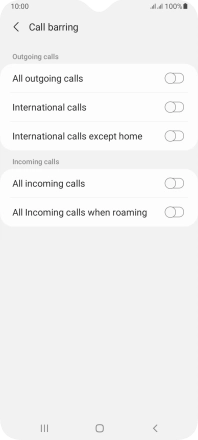 Press the indicator next to the required barring type to turn the function on or off.