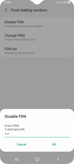 Key in your PIN2 and press OK. The default PIN2 is 1111.