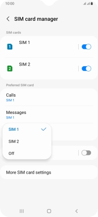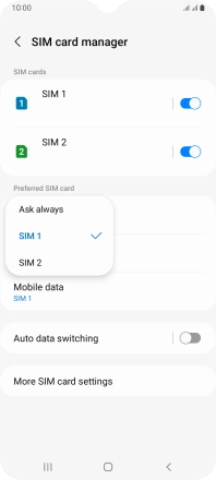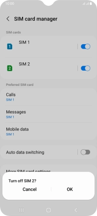 Press the indicator next to the required SIM to turn use of the SIM on or off.