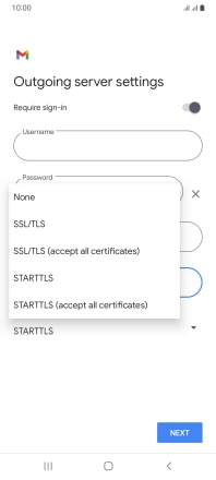Press the field below "Username" and key in the username for your email the email provider's outgoing server.