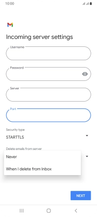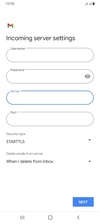 Press the field below "Server" and key in the name of your email provider's incoming server.