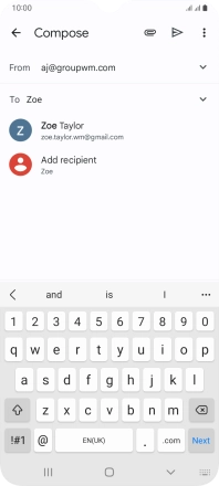 Press the text input field and write the text for your email message.