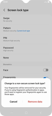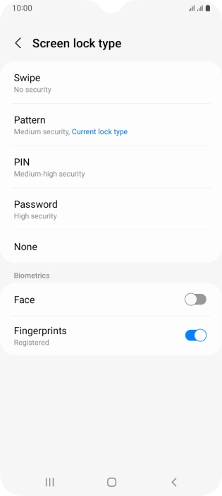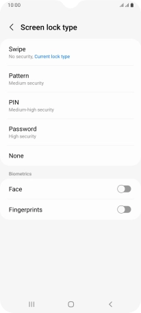Press Screen lock type and key in the additional phone lock code you created earlier.