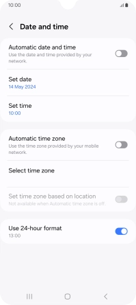 Press the indicator next to "Automatic date and time" to turn on the function.