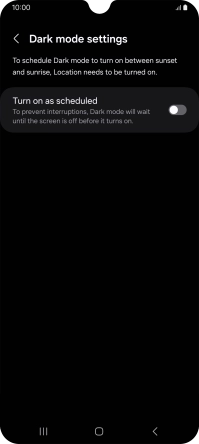 If you select Custom schedule, follow the instructions on the screen to select the required period of time for dark mode.
