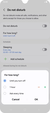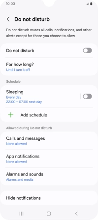 Press Add schedule and follow the instructions on the screen to select settings for automatic activation of Do Not Disturb.