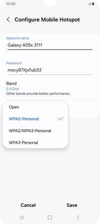 Press WPA3-Personal to password protect your Wi-Fi hotspot.