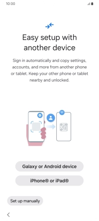 Press the required setting to transfer content from another device or press Set up manually.