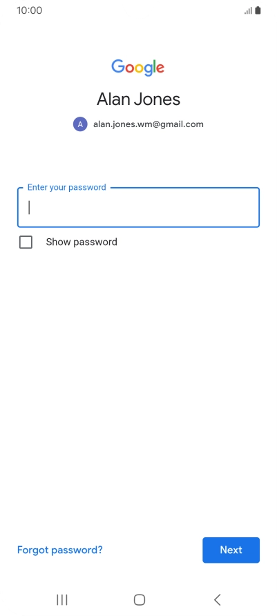 Press the field below "Enter your password" and key in the password for your Google account.