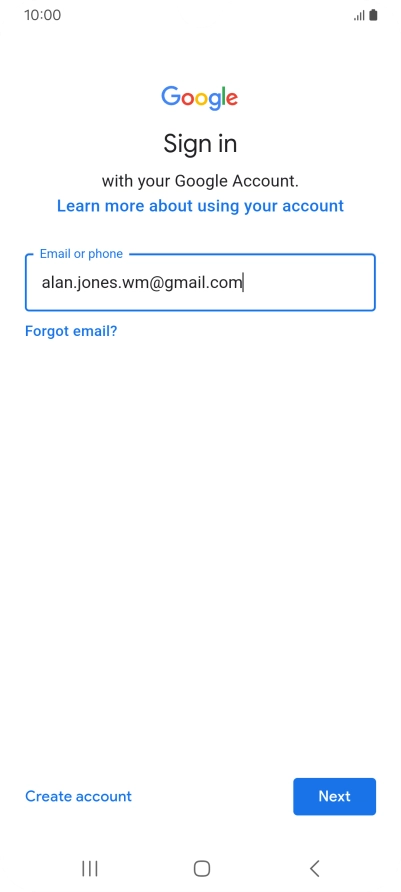 If you don't have a Google account, press Create account and follow the instructions on the screen to create an account.