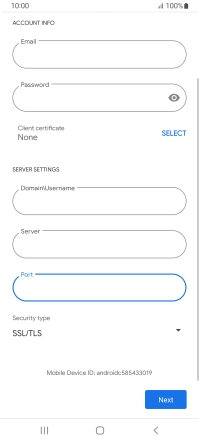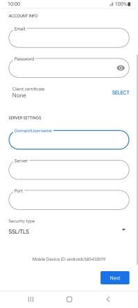 If this screen is displayed, your email account has been recognised and is being set up automatically. Follow the instructions on the screen to key in more information and finish setting up your phone.