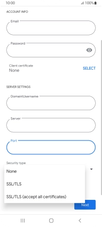 Press Password and key in the password for your email account.