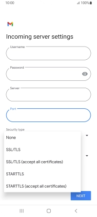 Press the field below "Server" and key in the name of your email provider's incoming server.