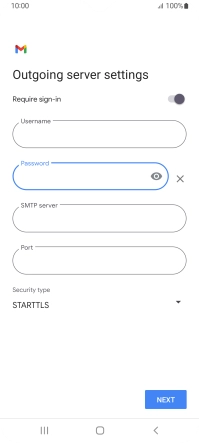 Press the field below "Password" and key in the password for your email provider's outgoing server.