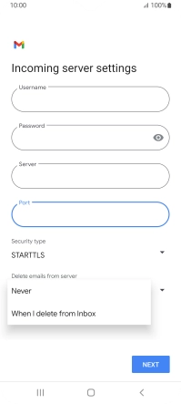 Press Never to keep email messages on the server when you delete them on your phone.