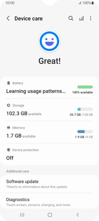 Press Battery and device care.