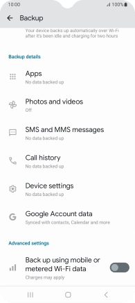 Press the indicator next to "Back up using mobile or metered Wi-Fi data" to turn the function on or off.