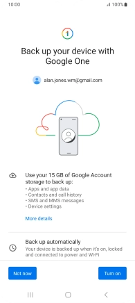 You can back up the phone memory to Google One to ensure that no data is lost when you update your phone's software or if you lose your phone. To back up the phone memory to Google One, you need to activate your Google account on your phone and establish a connection to a Wi-Fi network.