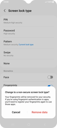 Press Screen lock type and key in the additional phone lock code you created earlier.