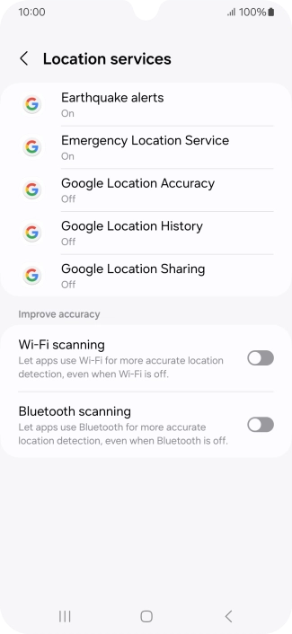 If you press the indicator next to "Improve Location Accuracy" to turn off the function, your phone can find your exact position using the GPS satellites but it may take longer as there is no access to supplementary information from the mobile network or nearby Wi-Fi networks.