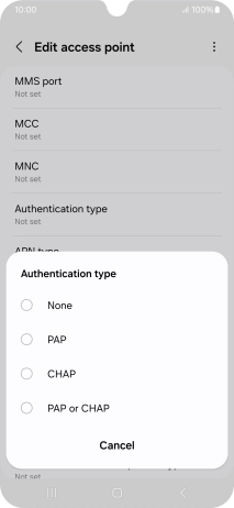Press Authentication type.