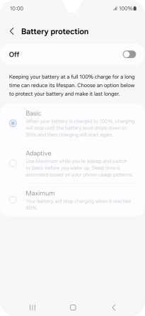 Using optimised battery charging, your phone reduces the time it spends fully charged which prolongs the overall battery life.