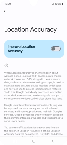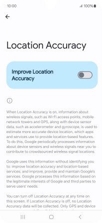 If you press the indicator next to "Improve Location Accuracy" to turn off the function, your phone can find your exact position using the GPS satellites but it may take longer as there is no access to supplementary information from the mobile network or nearby Wi-Fi networks.