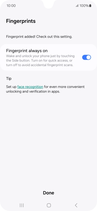 Follow the instructions on the screen to create the phone lock code using your fingerprint.