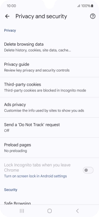 Press Privacy and security.