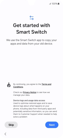 You can transfer the contents of another phone to your phone when it's activated for the first time and after a factory reset. When this screen is displayed, your phone is ready to transfer contents from another phone.