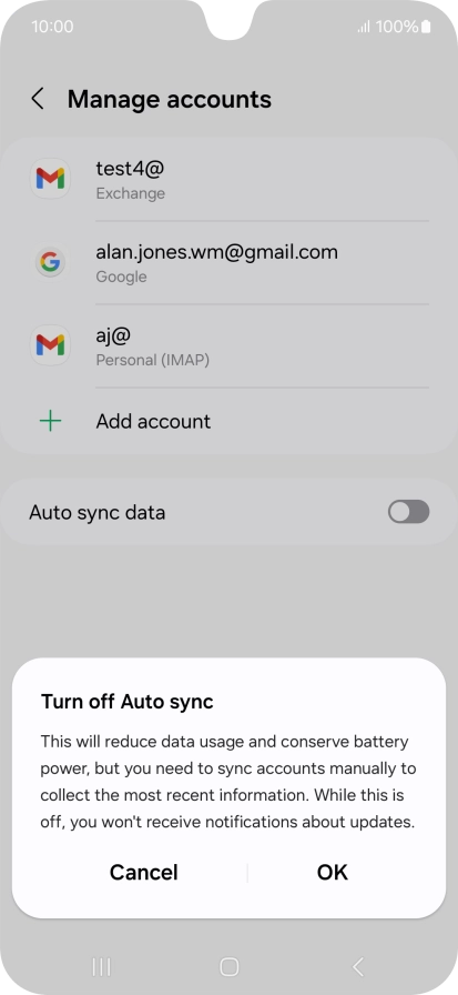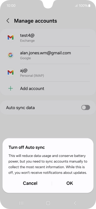 Press the indicator next to "Auto sync data" to turn the function on or off.