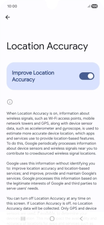 If you press the indicator next to "Improve Location Accuracy" to turn off the function, your phone can find your exact position using the GPS satellites but it may take longer as there is no access to supplementary information from the mobile network or nearby Wi-Fi networks.
