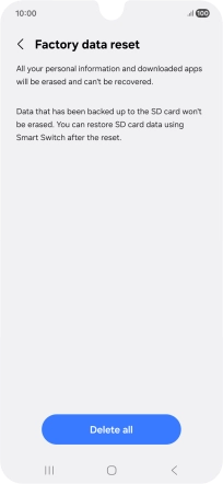 Press Delete all. Wait a moment while the factory default settings are restored. Follow the instructions on the screen to set up your phone and prepare it for use.