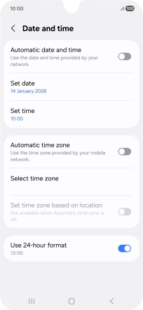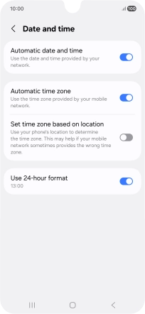 Press the indicator next to "Automatic date and time" to turn on the function.